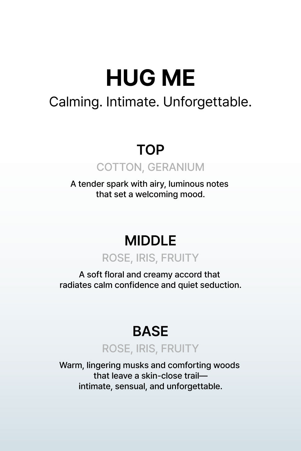 • Base: Warm, lingering musks and comforting woods that leave a skin-close trail—intimate, sensual, and unforgettable.