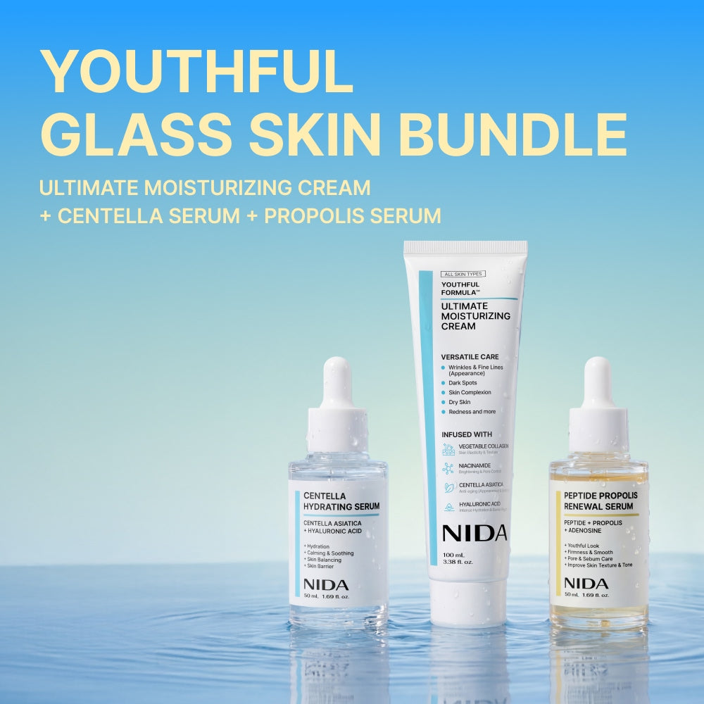 Get the ultimate glow with the NIDA Glass Skin Bundle—your complete set for smooth, radiant, and hydrated skin. 💧 Each step works together to refine texture, boost hydration, and reveal that coveted glass-skin look. 🌿