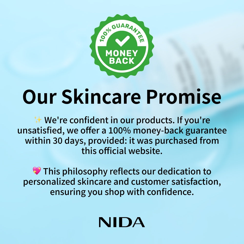 We're confident in our products. If our product does not suit your skin or you are not satisfied, we offer a 100% money-back guarantee*.