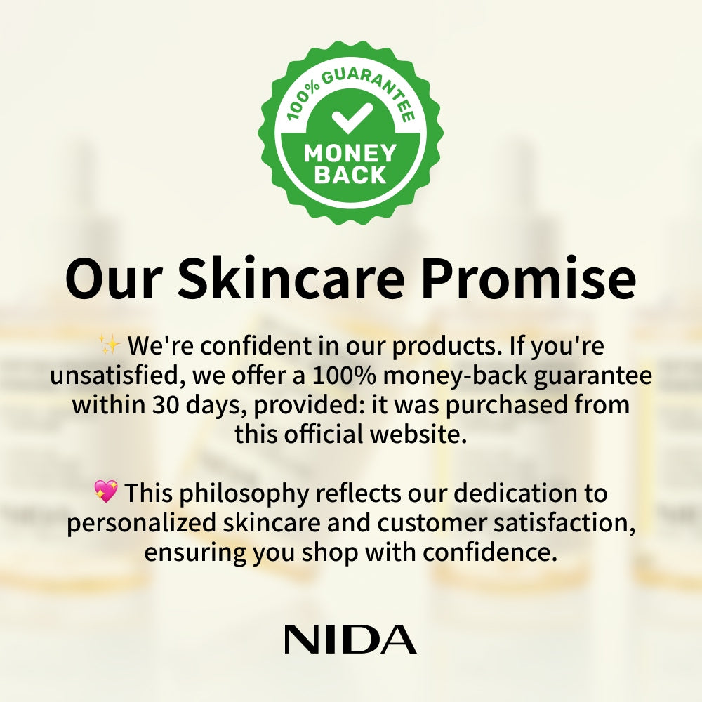 We're confident in our products. If our product does not suit your skin or you are not satisfied, we offer a 100% money-back guarantee*.